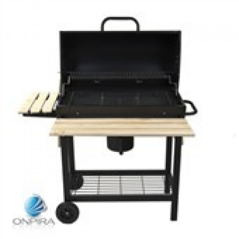 Velký zahradní gril na dřevěné uhlí. Materiál: kov, dřevo.