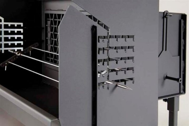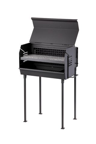 Tyto topeniště umožňují grilovat, jak na otočné jehle, tak použít žulový kámen. Tento gril má odnímatelné nohy, takže je možno částečně gril obezdít.