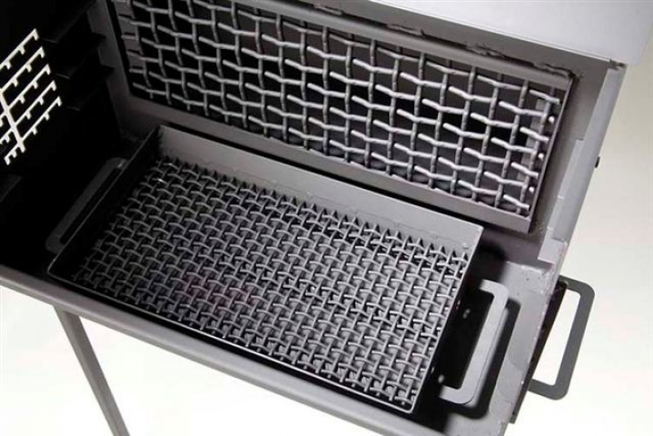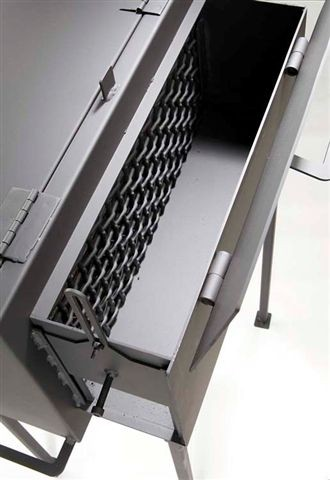 příslušenství : grilovací jehla, vkládané ohniště, žulový kámen, plechové " korýtko" pro zachytávání popela ze zadního topeniště.