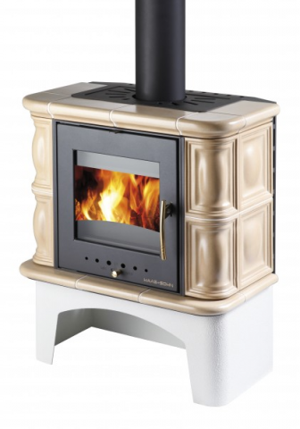 Kachlová kamna Loreto v provedení černý plech, kachle capuccino.