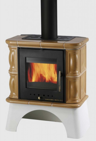 Kachlová kamna Lugano v provedení černý plech, kachle béžová.