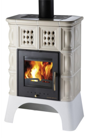 Treviso kachlová kamna v černé a krémové barvě s vyměnitelným výměníkem.