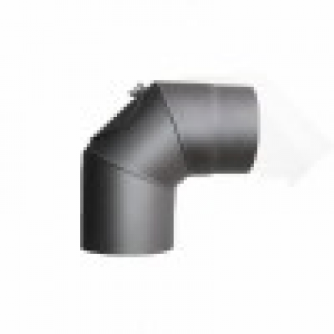 Segmentové koleno s čistícím otvorem o průměru 130 mm v barvě antracit, vyrobeno z 1,5 mm plechu.